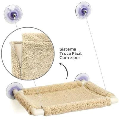 - Cama suspensa para gatos, suporta até 20 kg;